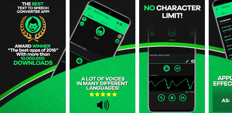 يوفر لك هذا التطبيق جميع التنسيقات التي يمكنك من خلالها تحويل عباراتك ويمكنك إنشاء أصوات مضحكة ومبتكرة باستخدام هذا التطبيق.