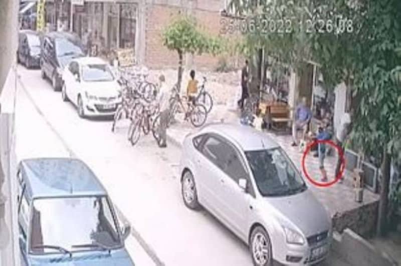 ظهر الطفل في مقطع الفيديو وهو ينزلق عبر الدرابزين ويقع من الطابق الأول على أكتاف شخص من حي الحاج إلياس في بلدة أماسيا شمال تركيا.
